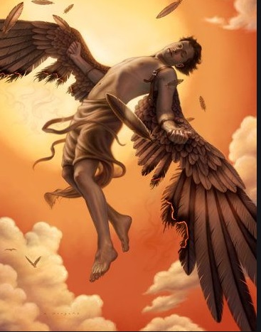 Kuzey Rönesans'ının ünlü ressamı Pieter Brueghel'in 1558 yılında yaptığı meşhur bir resmin adı İkarus'un Düşüşü (yada İkarus'un düşüşü sırasında bir manzara) resmi, kuzey Rönesansının simgesi olmuştur. Resim, tipik bir Rönesans resmi gibi pek çok imge, simge ve izleyenin her baktığında ayrı anlam verebileceği simgelerle doludur. Kabaca resimde üç ana görüntü vardır. Atıyla tarlasını süren bir çiftçi, koyunlarını otlatan bir çoban ve yüküyle, silüeti görünenbir şehre giden bir gemi. Geminin dibinde suda bacakları görünen kişi de resme adını veren İkarus'tur. Kendisi balmumu kanatlarıyla uçarken, güneşe yaklaşmış, kanatları eriyince Ege denizine düşmüştür. Sisam civarındaki İkarya adası onun adını taşır. (Destanın ayrıntısını başka kaynaktan öğrenebilirsiniz) Polonyalı yazar Jaroslaw Iwabskiewicz'in, bu resimden ilhamla yazdığı İkarus hikayesi vardır. Polonya, Alman işgalindeyken bir gencin, tramvayda, yanında oturanların bile farkında olmadan tutuklanmasını anlatır.